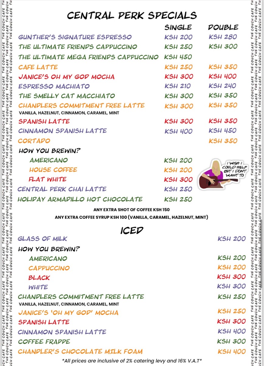 Step into The Couch Cafe, a delightful oasis nestled on Nkurumah Rd in Mombasa, Kenya, where nostalgia meets culinary creativity. This unique cafe has mastered the art of blending a cozy atmosphere with a dash of your favorite TV show, Friends, making it a must-visit for fans and food lovers alike.
